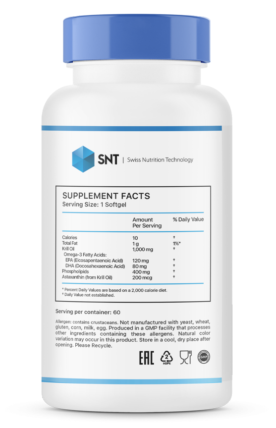 Масло криля - продукт, который получают путем переработки мелких рачков (Euphausia superba), обитающих в водах Антарктики, богато ПНЖК омега-3, антиоксидантами и фосфолипидами, играющими важную роль в усвоении ПНЖК.