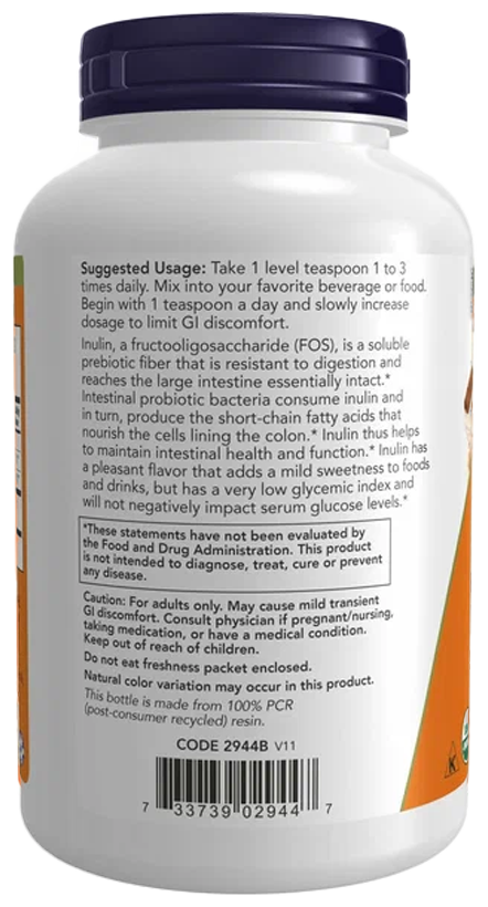 NOW Inulin Prebiotic Pure Powder Organic, 227 грамм